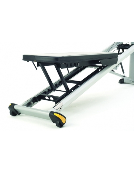- Η ρυθμιζόμενη σανίδα ολίσθησης προάγει τη βέλτιστη ευθυγράμμιση της σπονδυλικής στήλης κατά τη διάρκεια των εγκάρσιων κινήσεων και επιτρέπει νέες πρόσθετες παραλλαγές προπόνησης.